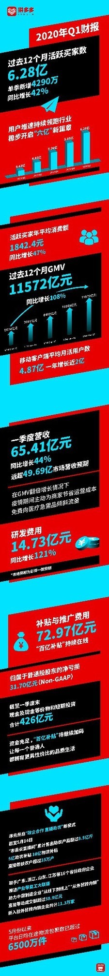 拼多多发布2020第一季度财报 年活跃买家数达6.28亿 继续保持高增长